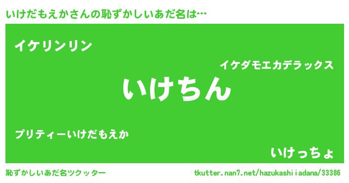 | 胡散臭い通販商品みたいなあだ名 | 『来世でも幸せになれる健康食品…その名も「いけだもえか」』 |