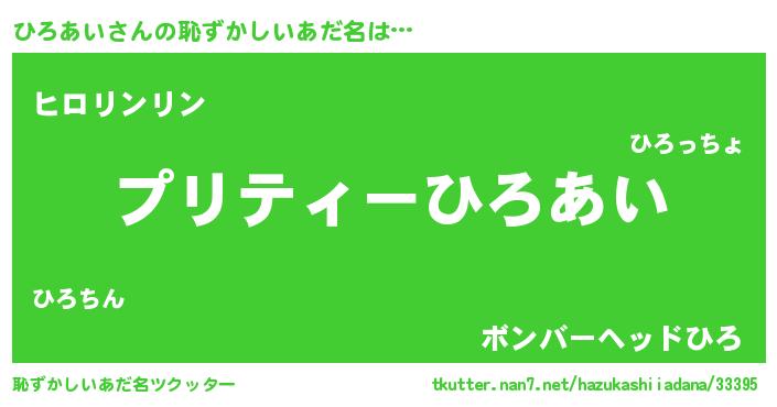 | 男性向けラノベタイトル風あだ名 | 『ひろあいの憂鬱』『ヒロアイスレイヤー』 |