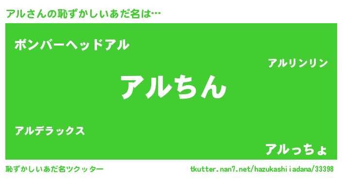 | 意味不明あだ名 | 『住所不定無職アル(39歳)』『永久保存アル』 |