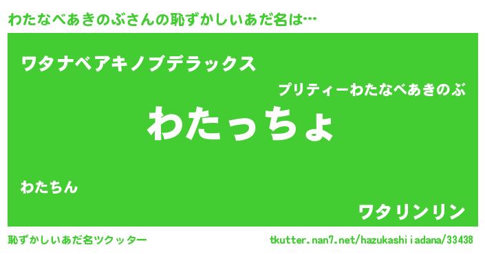 | 女子向けラノベタイトル風あだ名 | 『シンデレラわたなべあきのぶ家の靴箱館』 |