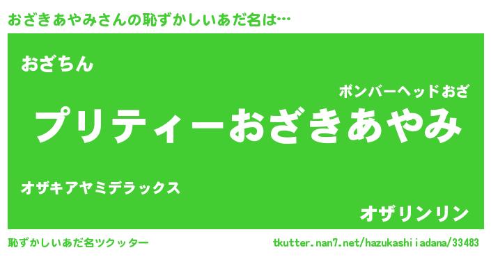 | 肩書あだ名 | 『おざきあやみ店長』『おざきあやみ大尉』 |