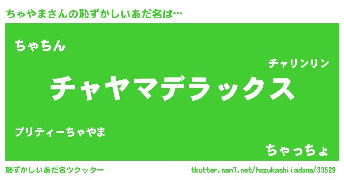| 男性向けラノベタイトル風あだ名 | 『Re:ちゃやまから始める異世界生活』 |