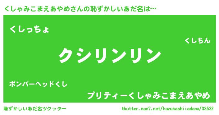 | ポケモン風あだ名 | 『ヒクシャミコマエアヤメ』『クシャダネ』 |