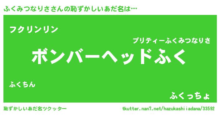 | 意味不明あだ名 | 『住所不定無職ふくみつなりさ(1歳)』 |