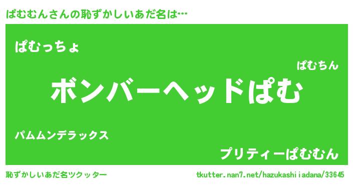 | ヒーロー風カッコイイあだ名 | 『慈愛の使者ぱむむん』『仮面パムダー』 |