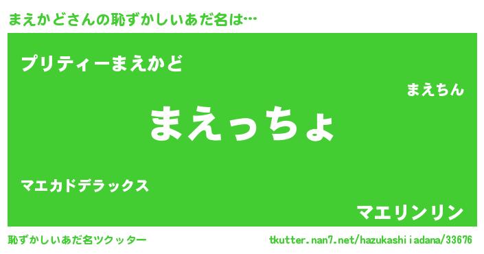 | 男性向けラノベタイトル風あだ名 | 『まえかどに滅ぼされるだけの簡単なお仕事です』 |