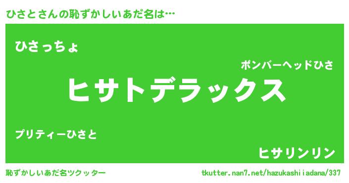 | 男性向けラノベタイトル風あだ名 | 『ヒサトスレイヤー』 |