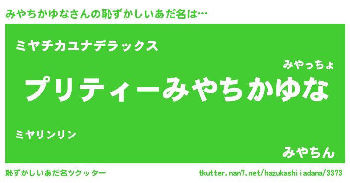 | ヘコむあだ名 | 『みやもー』『みやちかゆな(遠い目)』 |