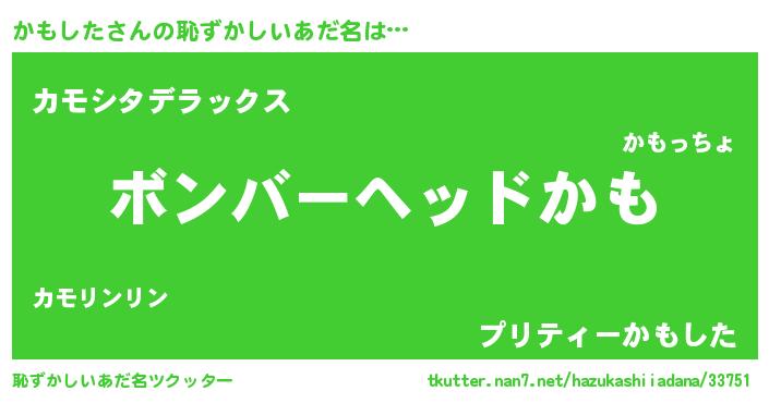 | 男性向けラノベタイトル風あだ名 | 『緋弾のカモシタ』 |