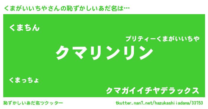 | 男性向けラノベタイトル風あだ名 | 『転生したらくまがいいちやだった件』 |