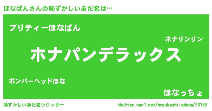 | ヒーロー風カッコイイあだ名 | 『超時空戦士ホナパン』『銀牙騎士ホナ』 |