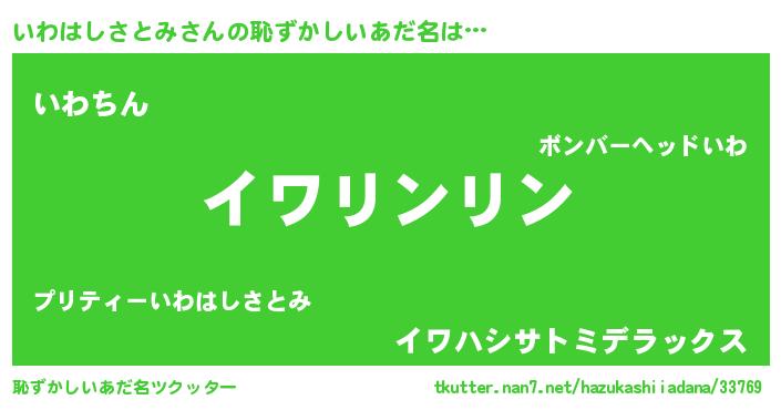 | 男性向けラノベタイトル風あだ名 | 『いわはしさとみの嫁は女の子じゃないと思った?』 |