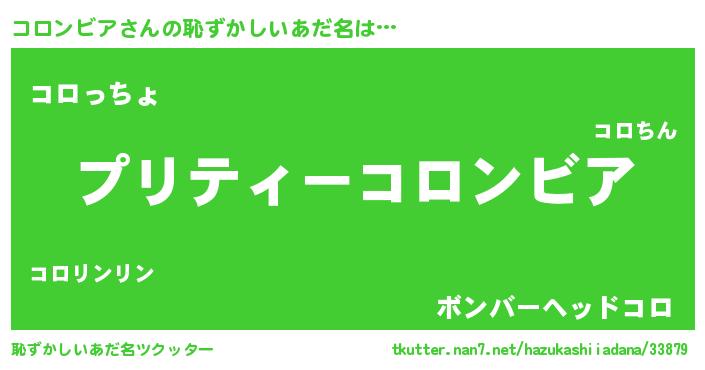 | 男性向けラノベタイトル風あだ名 | 『はたらくコロンビアさま!』 |