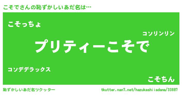 | 胡散臭い通販商品みたいなあだ名 | 『モテモテ間違いなし霊験あらたかなお札…その名も「こそで」』 |