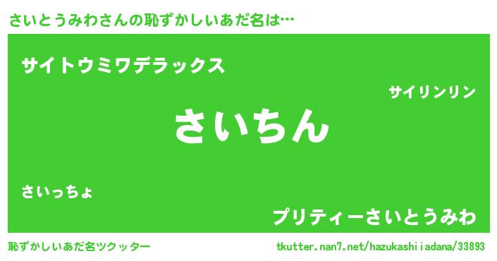 | 意味不明あだ名 | 『永久保存さいとうみわ』 |