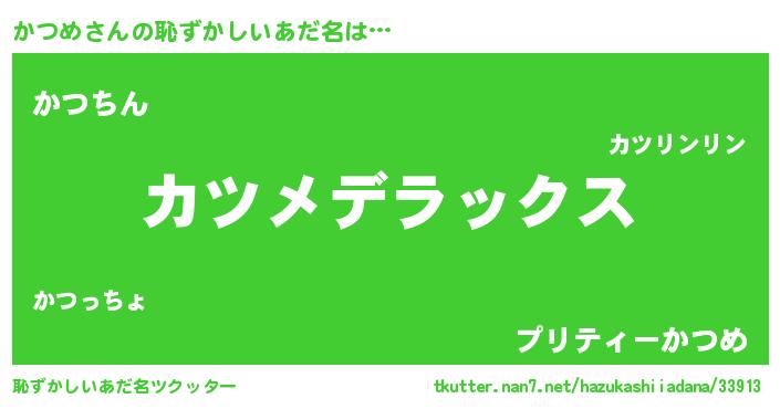 | ヒーロー風カッコイイあだ名 | 『仮面カツダー』『最強戦士カツメ』 |