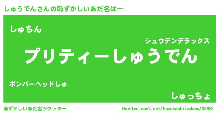 | 男性向けラノベタイトル風あだ名 | 『緋弾のシュウデン』『しゅうでんの憂鬱』 |