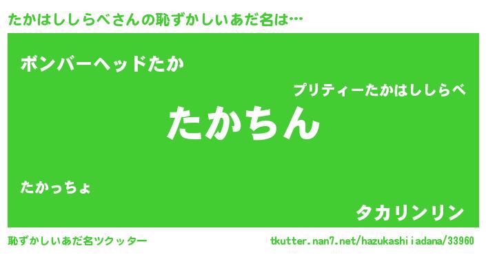| ヘコむあだ名 | 『たかはししらべ(爆)』『たかぷりん』 |