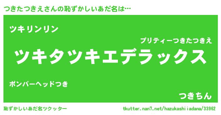 | 男性向けラノベタイトル風あだ名 | 『つきたつきえに滅ぼされるだけの簡単なお仕事です』 |