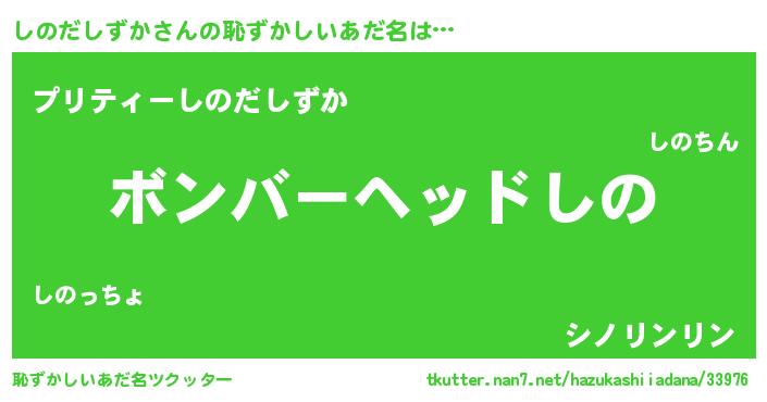| 男性向けラノベタイトル風あだ名 | 『しのだしずか~年齢イコール彼女いない歴の魔法使い~』 |