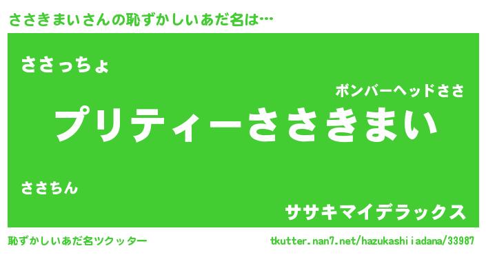 | ヒーロー風カッコイイあだ名 | 『スーパーササキマイ』『仮面ササダー』 |