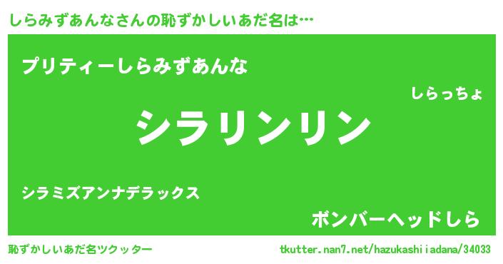 | 意味不明あだ名 | 『とにかく怪しいしらみずあんな』 |