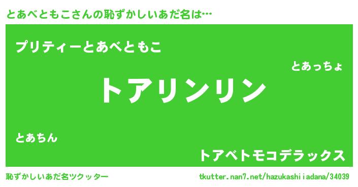 | ポケモン風あだ名 | 『ヒトアベトモコ』『トアチュウ』 |