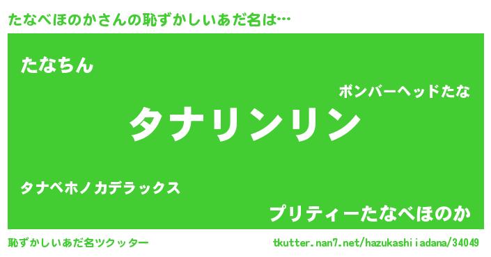 | ヘコむあだ名 | 『たな太郎』『たなべほのか(笑)』 |