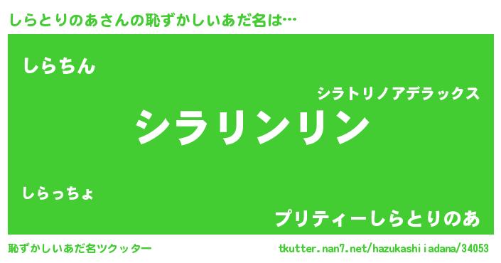 | 意味不明あだ名 | 『住所不定無職しらとりのあ(95歳)』 |
