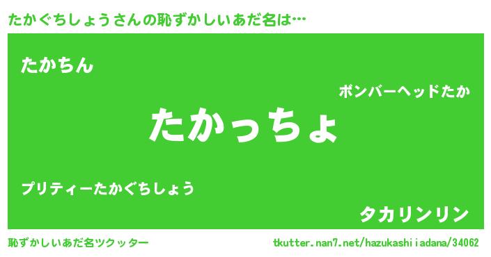 | 欧米人風あだ名 | 『たかぐちしょうクリステル』 |
