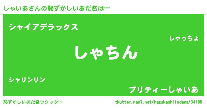 | 意味不明あだ名 | 『永久保存しゃいあ』『自称しゃいあ』 |