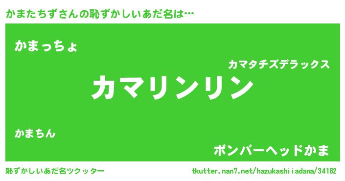 | 男性向けラノベタイトル風あだ名 | 『かまたちずの嫁は女の子じゃないと思った?』 |