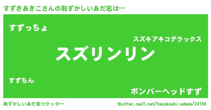 | ポケモン風あだ名 | 『ヒスズキアキコ』『スズキング』 |