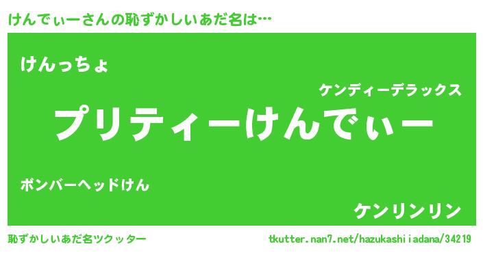 | 意味不明あだ名 | 『ペロリンけんでぃー』『自称けんでぃー』 |