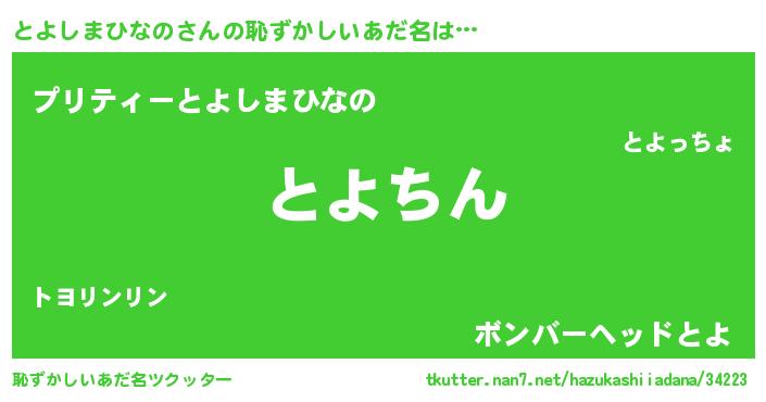 | ヘコむあだ名 | 『とよしまひなの(笑)』『とよにゅー』 |