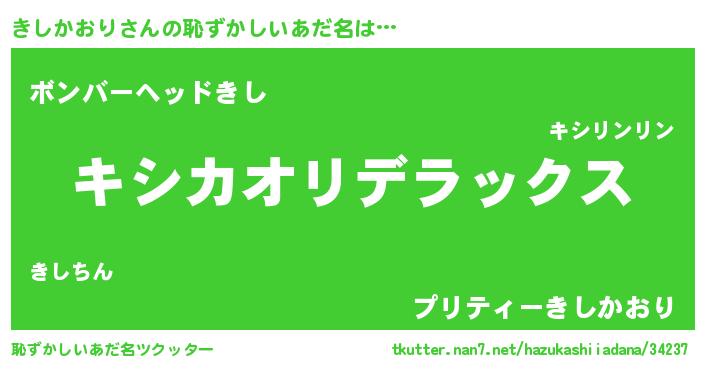 | 男性向けラノベタイトル風あだ名 | 『きしかおりに滅ぼされるだけの簡単なお仕事です』 |