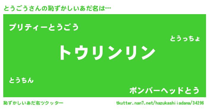 | 意味不明あだ名 | 『とにかく怪しいとうごう』 |