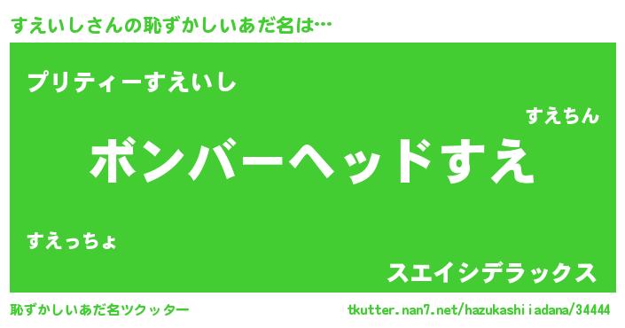 | 意味不明あだ名 | 『住所不定無職すえいし(95歳)』 |