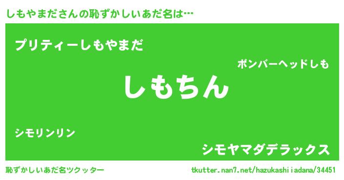 | 胡散臭い通販商品みたいなあだ名 | 『絶対に幸福をもたらす健康食品…その名も「しもやまだ」』 |
