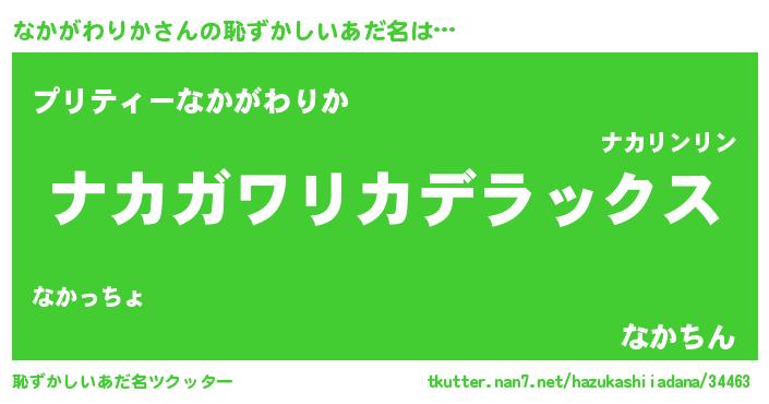 | 欧米人風あだ名 | 『なかがわりか・ステッグマイヤー』 |
