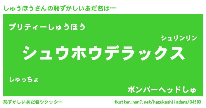 | ヒーロー風カッコイイあだ名 | 『最強戦士シュウホウ』『黄金騎士シュ』 |