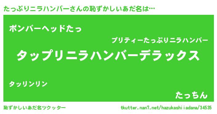 | ヒーロー風カッコイイあだ名 | 『最強戦士タップリニラハンバー』 |