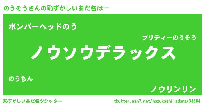 | ヒーロー風カッコイイあだ名 | 『仮面ノウダー』『究極戦士ノウソウ』 |