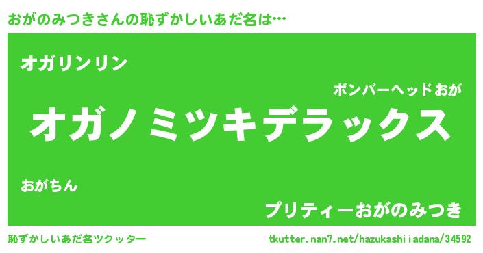| 意味不明あだ名 | 『自称おがのみつき』 |