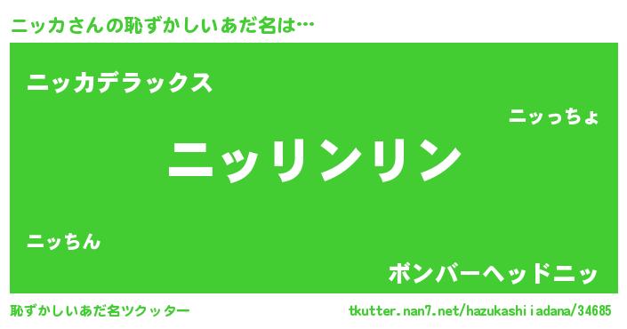 | 意味不明あだ名 | 『とにかく怪しいニッカ』『自称ニッカ』 |