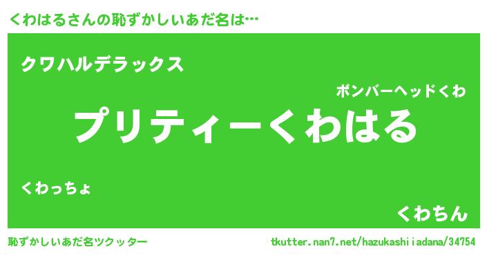 | ヘコむあだ名 | 『くわにー』『くわはる(爆)』 |