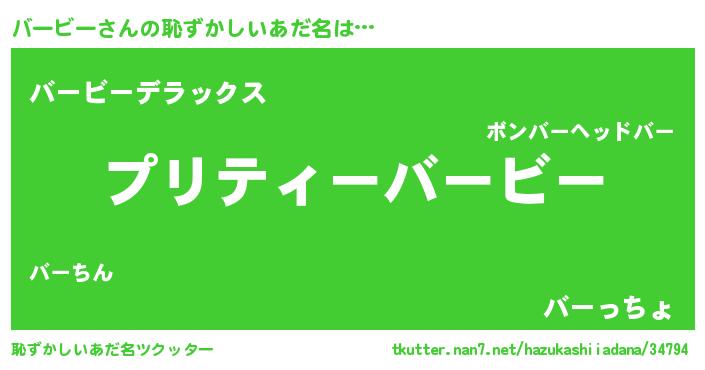 | 男性向けラノベタイトル風あだ名 | 『バービーの憂鬱』 |