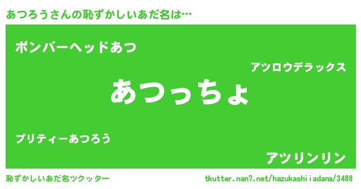 | 意味不明あだ名 | 『あつろうフォーエバー』『自称あつろう』 |