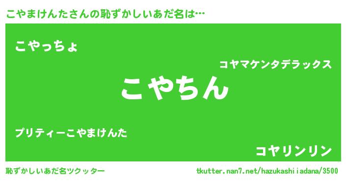 | ヘコむあだ名 | 『こやまけんた(苦笑)』『なまこ酢』 |