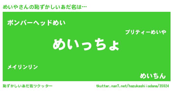 | 意味不明あだ名 | 『めいやフォーエバー』『永久保存めいや』 |